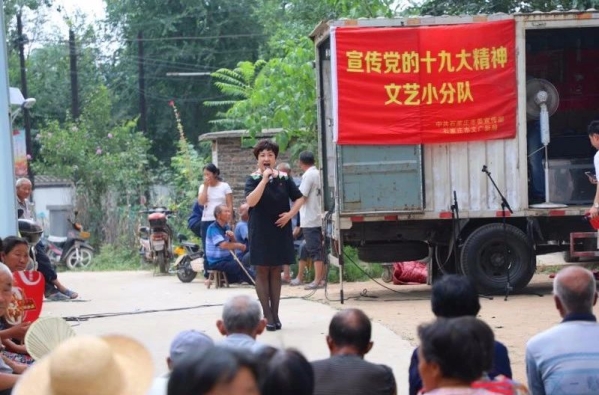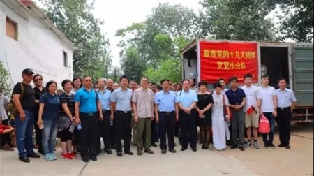 7月3日上午,市演艺集团宣传党的十九大精神文艺小分队来到市文广新局对口帮扶村,组织党员结对帮扶。
